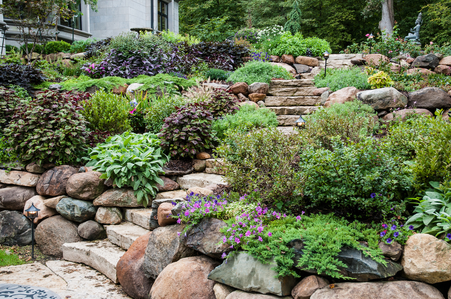 Natursteinmauern im Garten sind mehr als nur Hangabstützungen. Richtig angelegt sind sie ein wichtiges Gestaltungselement, ein Blickfang und bieten nicht zuletzt einen besonderen Lebensraum für Tiere und Pflanzen. Es können fast alle Steine für Trockenmauern verwendet werden. Wichtig ist Ihre Haltbarkeit (Frost).